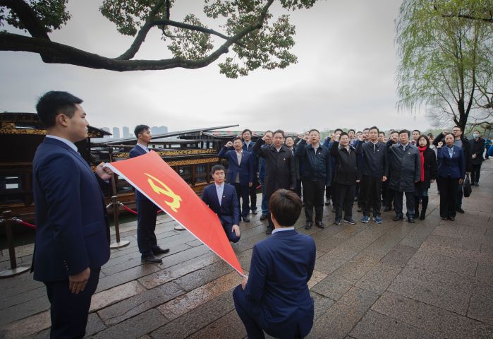 陳肇雄率隊參觀了南湖革命紀念館,瞻仰了革命紅船,重溫了入黨誓詞,開展了黨員攻關團隊授旗活動。