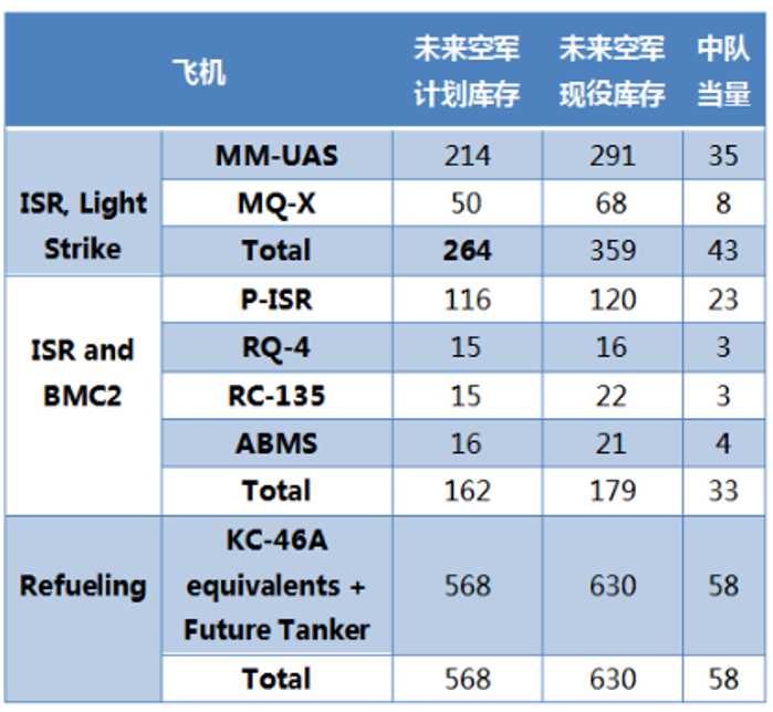 表1《2030年飛機清冊》提出的部分機型發展清單[5]